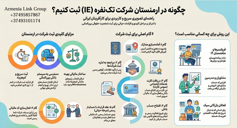 راهنمای جامع ثبت شرکت کارآفرینی تک‌نفره (IE) در ارمنستان؛ از مدارک تا شروع فعالیت رسمی